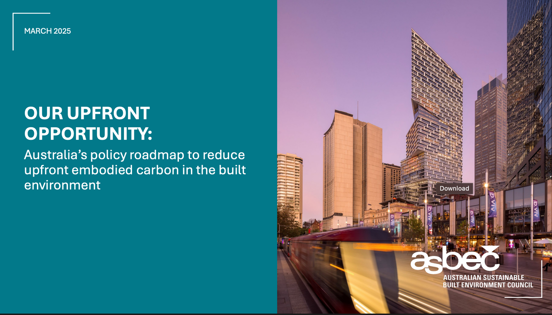 Our Upfront Opportunity: Australia's policy roadmap to reduce upfront embodied carbon in teh built environment (March 2025).