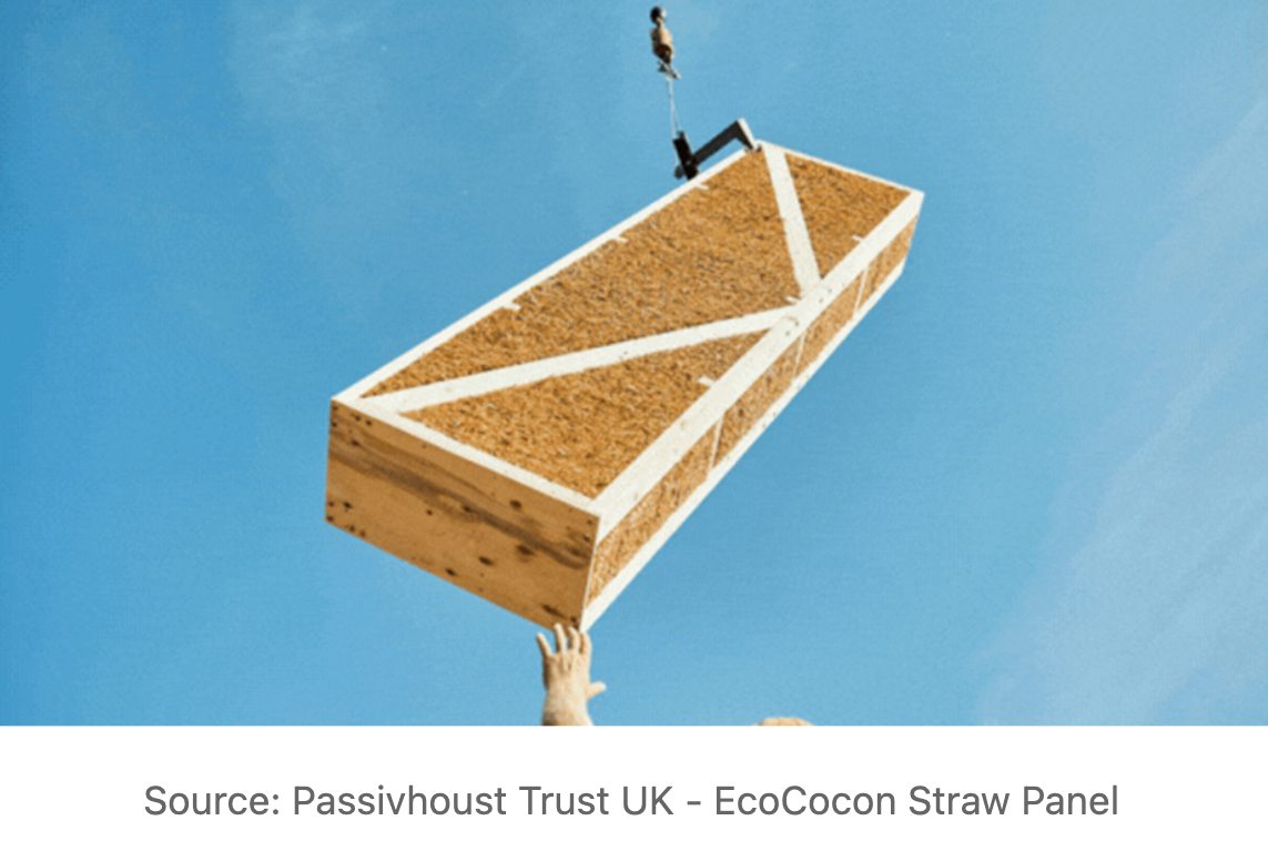 - Straw or mycelium insulation panels made from this season’s wheat stubble